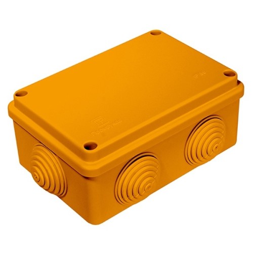 Монтажная распределительная коробка входит в состав огнестойких кабельных линий компании Промрукав и представляет собой термозащитный бокс оранжевого цвета RAL 2004, который оснащен крышкой и 10-ю вводами для кабелей. Он используется при прокладке систем противопожарной безопасности по стенам и потолкам зданий, и его основное назначение состоит в механической защите мест соединения проводов и кабелей. Также коробка защищает внутреннее пространство от попадания пыли, влаги и посторонних предметов. Конструкция из двух стальных элементов позволяет надежно крепить ее к поверхности стен и потолка. Такая коробка пригодна для открытой установки, поэтому обладает надежной степенью защиты IP55, а мембранные сальники на вводах с диаметром 25 мм служат для герметичности подвода проводов. Огнеупорный короб имеет 4 полюса на 2 керамических колодках для проводов сечением до 2.5 квмм. Его установка допустима в сетях с рабочим напряжением до 750 Вольт. Материалом изготовления корпуса и крышки является безвредный полимер, который не содержит галогенов, а главное имеет высокую стойкость к воспламенению от нагретой проволоки до 650 градусов Цельсия. Предел огнестойкости находится в диапазоне: Е15-Е120. Размеры коробки: 120х80х50 мм. Температура эксплуатации: -25 до +40 градусов Цельсия.