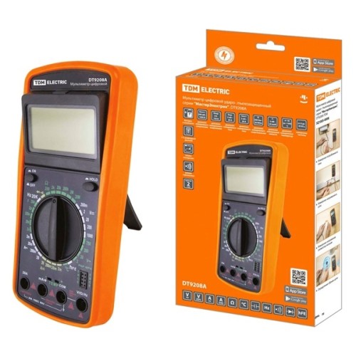 Мультиметры предназначены для измерения постоянного и переменного напряжения и тока, сопротивления цепей, проверки диодов, проверки целостности цепи и др. Используются для измерения потребляемого тока; измерения напряжения в сети; измерения напряжения элементов питания; определения обрыва цепи. Корпуса мультиметров изготовлены из не поддерживающего горение пластика. Мультиметры DT9205A, DT9208A оснащены кнопкой «DATA HOLD», которая записывает измеряемые показания. Щупы и батарейка в комплекте делают приборы полностью готовыми к работе. Мультиметры упакованы в яркую информативную блистерную упаковку.