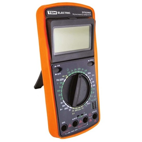Цифровой мультиметр с защитой от падений, DT9208A ТДМ, для измерения: тока, напряжения, сопротивления, температуры, проверки диодов, режим "прозвонки"