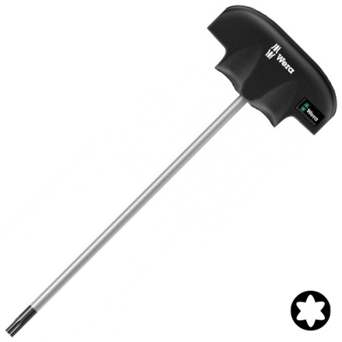 Отвертка с Т-образной ручкой профиля TORX бренда Wera серии 467 применяется для винтов с профилем TORX размера TX 20. Длина стержня отвертки составляет 100 мм. Ширина ручки – 70 мм, длина ручки – 33 мм. Эргономичная форма поперечной ручки полностью соответствует линии ладони. Пальцы лежат в плавно закругленных углублениях ручки, поэтому потеря сцепления между рукой и рукояткой исключаются. Благодаря положению руки, при котором ось отвертки является ее продолжением, достигаются особенно большие моменты силы. Стержень отвертки выполнен из высококачественной легированной стали с добавками хрома и молибдена. Наконечник Wera Black Point, а также сложная технология закалки гарантируют его долговечность, а также повышенную защиту от коррозии и высокую точность посадки. Использование высококачественных твердых сплавов для инструментов в сочетании с большой площадью контакта ручки с ладонью обеспечивает без потерь эффективную передачу силы. Гарантийный срок службы инструмента равен 2 года. Страна производства инструмента – Чехия.