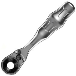 Компактный ключ-трещотка с переходником торговой марки Wera серии Zyklop Mini 1 подходит для прямого присоединения битов с шестигранным хвостовиком 1/4 дюйма. Адаптер имеет внутренний шестигранник 1/4 дюйма+наружный квадрат 1/2 дюйма, его длина равна 25 мм. Длина трещотки составляет 87 мм, вес изделия – 126,2 грамма. Штампованная цельнометаллическая конструкция трещотки сочетает эргономичность и невероятную прочность. Она выдерживает моменты силы более 65 Нм, что значительно больше того значения, которое в обычных условиях может показать такой маленький инструмент. Тонкий механизм зацепления трещоточного ключа на 60 зубцов обеспечивает малый угол возврата всего 6 градусов и годится для точных работ. Она идеально подходит для работы в узком пространстве. Рифленый диск помогает быстро вращать винты. Трещоточный ключ оснащен переключателем реверса для удобной смены направления вращения и имеет надежную фиксацию насадок. Он имеет гарантию от производителя сроком на 2 года.