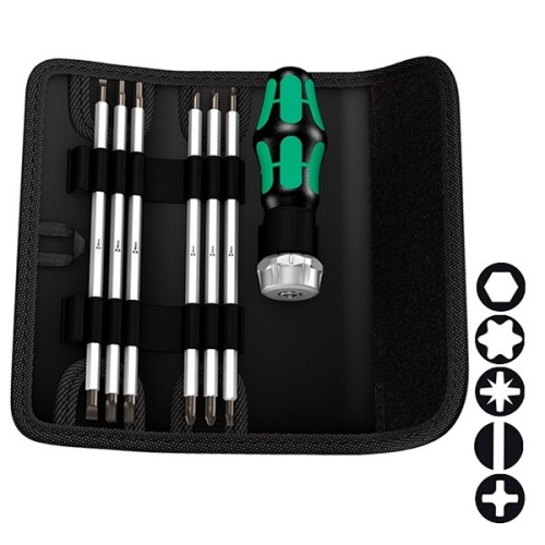 Складная сумка с 6 двусторонними стержнями и ручкой-держателем с трещоткой Wera Vario