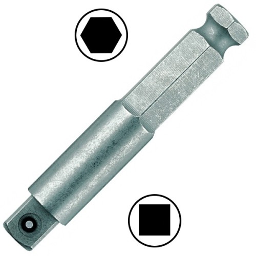 Оправка-хвостовик (переходник) для торцовых головок, используемых с машинным приводом. Отвод: наружный квадрат фирмы Wera. Привод: шестигранный хвостовик 7/16".