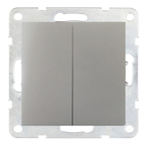 Переключатель двухклавишный (проходной) Ecoplast LK80 Серебристый металлик (в сборе)