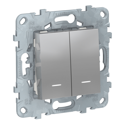 Переключатель двухклавишный (проходной) с подсветкой Schneider Electric Unica New Studio Алюминий (в сборе)