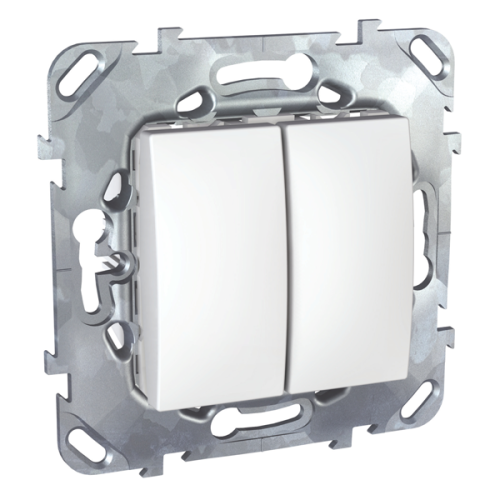 Переключатель двухклавишный (проходной) Schneider Electric Unica Хамелеон Белый (в сборе)
