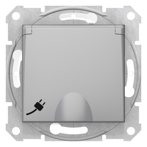 Розетка IP44 с заземлением и с крышкой Schneider Electric Sedna Алюминий (в сборе)
