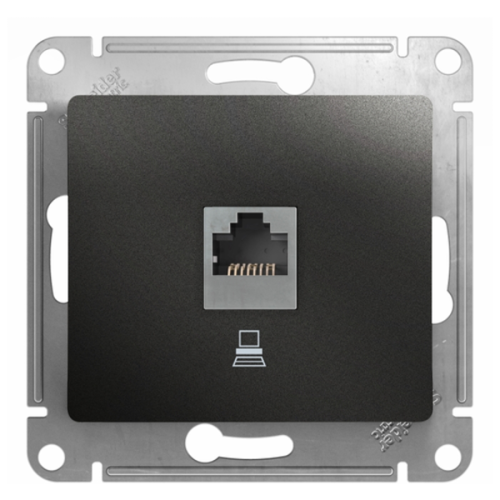 Розетка компьютерная 1xRJ45 UTP 5e категории Schneider Electric Glossa Антрацит (в сборе)