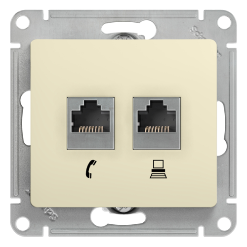 Розетка компьютерная двойная 2xRJ45 UTP 5e категории Schneider Electric Glossa Бежевый (в сборе)