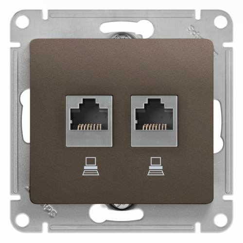 Розетка компьютерная двойная 2xRJ45 UTP 5e категории Schneider Electric Glossa Шоколад (в сборе)