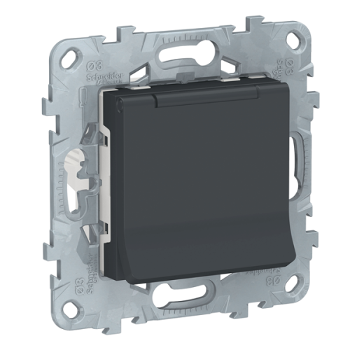 Розетка с заземлением и с крышкой Schneider Electric Unica New Pure Антрацит (в сборе)