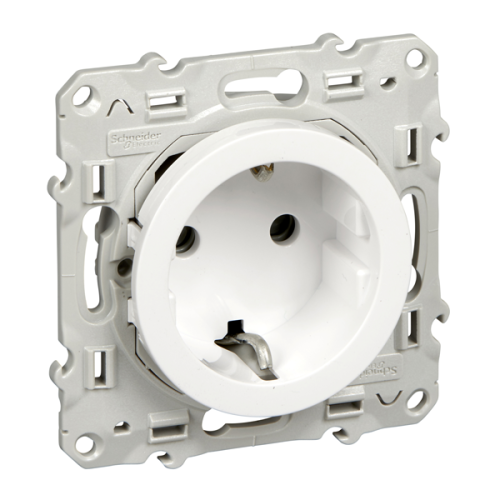 Розетка с заземлением и со шторками, самозажимные клеммы Schneider Electric Odace Белый (в сборе)