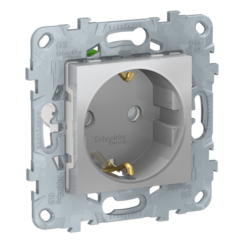Розетка с заземлением и со шторками, винтовые клеммы Schneider Electric Unica New Studio Алюминий (в сборе)