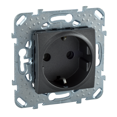 Розетка с заземлением и со шторками, винтовые клеммы Schneider Electric Unica Top Графит (в сборе)