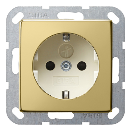 Розетка с заземлением, самозажимные клеммы Gira ClassiX Art Латунь (в сборе)