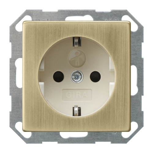 Розетка с заземлением, самозажимные клеммы Gira ClassiX Бронза (в сборе)
