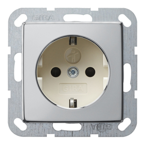 Розетка с заземлением, самозажимные клеммы Gira ClassiX Хром (в сборе)