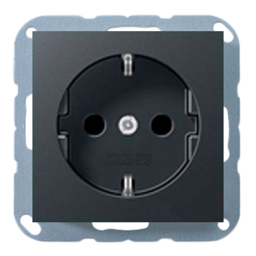 Розетка с заземлением, самозажимные клеммы Jung ECO Profi Standart Черный матовый (в сборе)