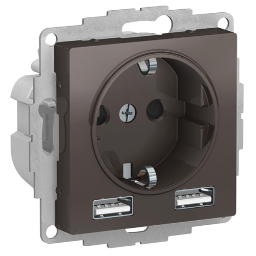 Розетка силовая с USB зарядкой Schneider Electric AtlasDesign Nature Мокко (в сборе)