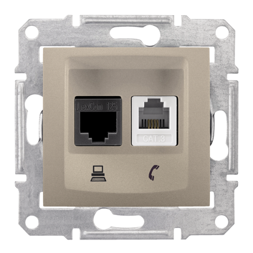 Розетка телефон компьютер RJ11 / RJ45 UTP 5e категории Schneider Electric Sedna Титан (в сборе)