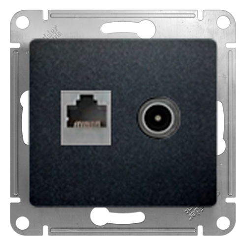 Розетка TV / RJ45 UTP 5e Schneider Electric Glossa Антрацит (в сборе)
