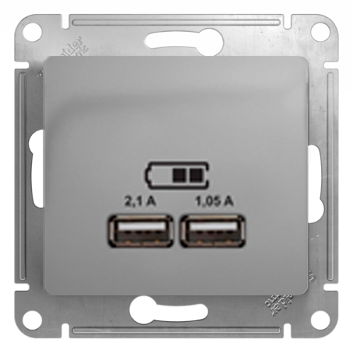 Розетка USB для зарядки устройств Schneider Electric Glossa Алюминий (в сборе)