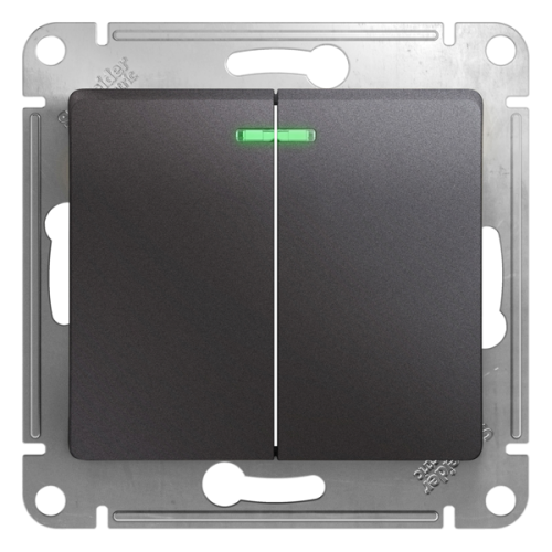 Выключатель двухклавишный с подсветкой Schneider Electric Glossa Графит (в сборе)