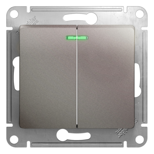 Выключатель двухклавишный с подсветкой Schneider Electric Glossa Платина (в сборе)