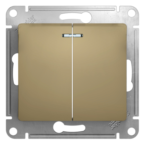 Выключатель двухклавишный с подсветкой Schneider Electric Glossa Титан (в сборе)