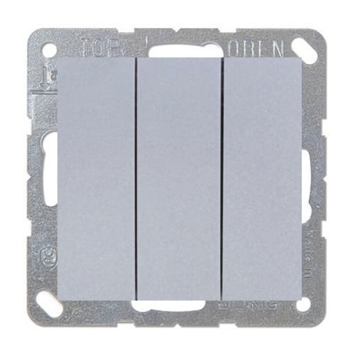Выключатель трехклавишный Simon Simon 15 Алюминий (в сборе)