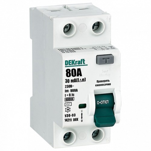 Выключатели дифференциального тока серии УЗО-03 2P 80А 30мА тип AC 6кА DEKraft