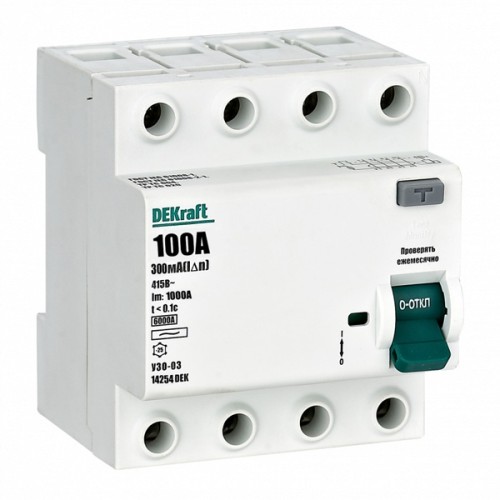 Выключатели дифференциального тока серии УЗО-03 4P 100А 300мА тип AC 6кА DEKraft
