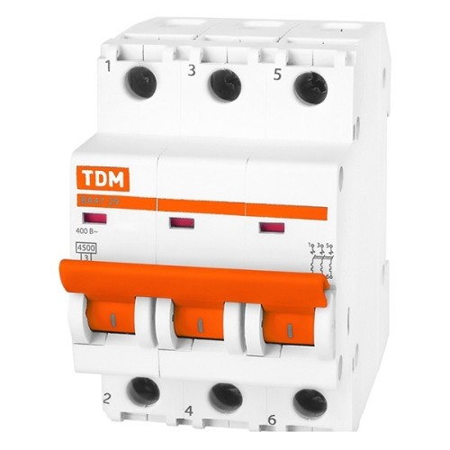 Трехполюсный автомат ВА47-29 ТДМ, номинальный ток 32 ампера, с характеристикой С, 3 модуля шириной 52,5 мм