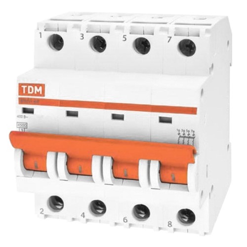 Четырехполюсный автомат ВА47-29 ТДМ, номинальный ток 10 ампер, с характеристикой D, 4 модуля шириной 70 мм