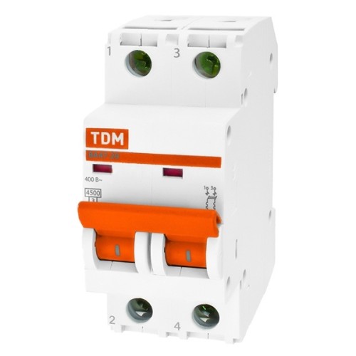 Двухполюсный автомат ВА47-29 ТДМ, номинальный ток 40 ампер, с характеристикой B, 2 модуля шириной 35 мм
