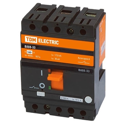 Трехполюсный силовой автомат BA88-33 ТДМ, номинальный ток 160 ампер, отключающая способность 35 кА