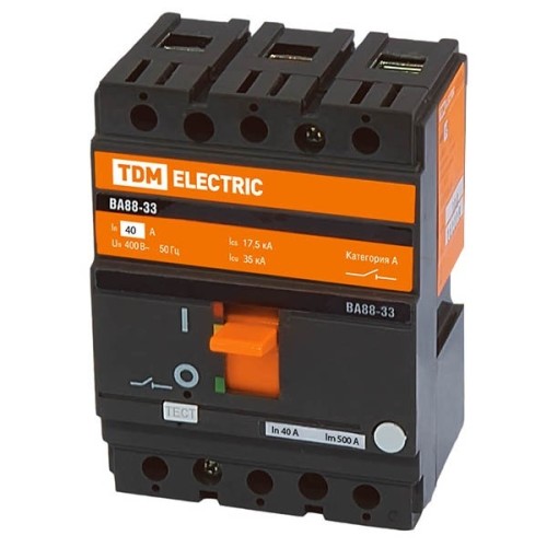 Трехполюсный силовой автомат BA88-33 ТДМ, номинальный ток 40 ампер, отключающая способность 35 кА