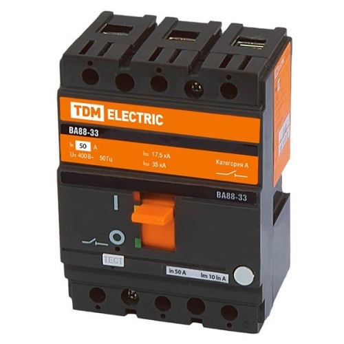 Трехполюсный силовой автомат BA88-33 ТДМ, номинальный ток 50 ампер, отключающая способность 35 кА
