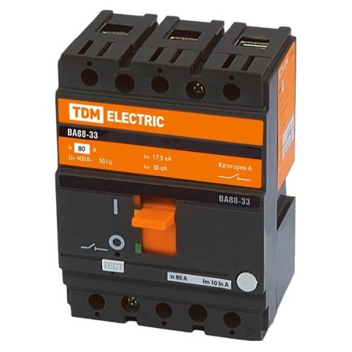 Трехполюсный силовой автомат BA88-33 ТДМ, номинальный ток 80 ампер, отключающая способность 35 кА