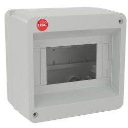 Представленный здесь настенный электрораспределительный щиток изготовлен из специального тугоплавкого самозатухающего термопласта с наружным декоративным покрытием светло-серого (RAL 7035) цвета. Данное изделие обладает уровнем защищенности IP20. Это обеспечивает защиту от случайного прикасания пальцами к токопроводящим частям щитка. Щиток не защищен от отрицательного воздействия повышенной влажности воздуха, поэтому используется для монтажа только в сухих и не пыльных помещениях. Изделие изготовлено на предприятиях известной российской электротехнической компании ДКС.