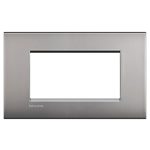 Декоративное, установочное обрамление из металла, прямоугольной формы без перегородок, для модульных (4 модуля) электроустановочных механизмов ЛивингЛайт Бтичино, цвет никель с матовой поверхностью