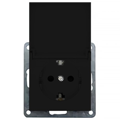 Розетка силовая встраиваемая с заземлением, шторками и крышкой