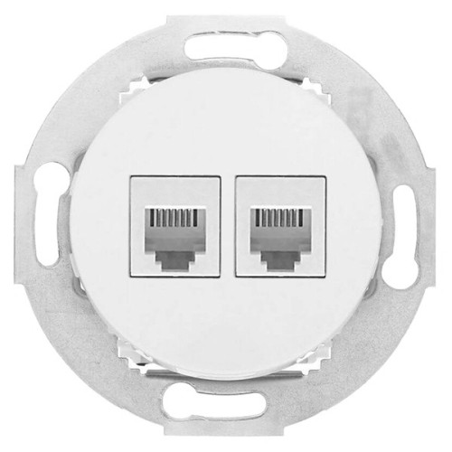 Круглая двойная компьютерная розетка 2хRJ-45 категории 6, предназначается для подключения компьютерного оборудования. Подключение производиться через витую неэкранированную пару (UTP), обеспечивает передачу сигналов частотой 100 МГц.