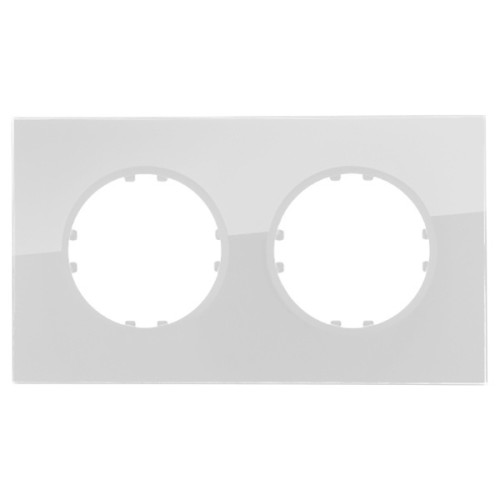 Представленная здесь рамка изготовлена из натурального стекла и предназначена для оформления блока из двух серийных механизмов. Стеклянная поверхность имеет насыщенный белый оттенок. Места постовой установки оборудованы вставками из прочного и пластичного полимера, что значительно упрощает монтажную сборку модульного блока.