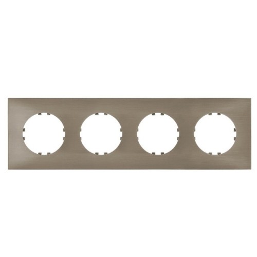 Рамка изготовлена из специального электротехнического негорючего термопластика бронзового цвета, не поддающегося отрицательному воздействию ультрафиолетового излучения. Изделие предназначается для защиты и декорирования трех, установленных в ряд скрыто в стену помещения, розеток различного назначения или выключателей от известного производителя Ecoplast серии Vintage.