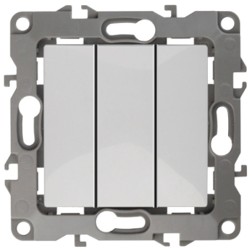 Выключатель 3-клавишный серии Эра 12 скрытой установки механизм цвет белый 12-1107-01. Номинальные характеристики 10А 250В . Сделан из поликарбоната, оснащён винтовыми уникальными клеммами ЭКСПЕРТ для надёжной фиксации жил кабеля в механиме. Парные клеммы обеспечивают соединение шлейфом. Монтаж в подрозетник производится и на лапки, и на винты. Рамки приобретаются отдельно. Рамки Эра 12: 1 пост 12-5001-хх, 2 поста 12-5002-хх, 3 поста 12-5003-хх, 4 поста 12-5004-хх, 5 постов 12-5005-хх. Рамки Эра 12 Сатин: 1 пост 12-5101-хх, 2 поста 12-5102-хх, 3 поста 12-5103-хх, 4 поста 12-5104-хх, 5 постов - 12-5105-хх (хх - код цвета: 01-белый, 02-слоновая кость, 03-алюминий, 04-шампань, 05-антрацит, 06-чёрный, 07-ольха(белёный дуб-сатин), 08-вишня, 09-дуб, 10-венге, 11-сосна, 21-жёлтый, 22-оранжевый, 23-красный, 24-охра, 25-бордо, 26-лайм, 27-зелёный, 28-голубой, 29-синий).