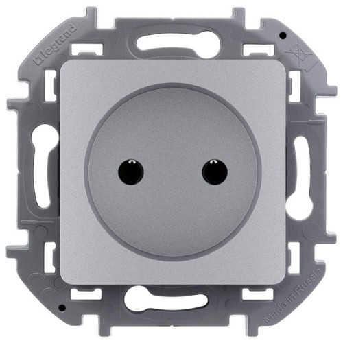 Электрическая розетка торгового знака Legrand серии Inspiria без заземления применяется для скрытого монтажа в электрических сетях с максимальным током 16 Ампер, напряжением 250 Вольт при максимальной мощности 3680 Ватт. Она используется для электропитания в зданиях с проводкой без защитного проводника. Контактная группа розетки изготовлена из высококачественной латуни CuZn37, которая имеет высокую степень упругости и сохраняет плотный контакт с вилкой даже при длительной эксплуатации. Изделие оснащено зажимами для присоединения проводников с винтовым креплением и П-образной формы для исключения бокового выдавливания провода. В зажимах установлены качественные винты с никель-цинковым напылением для надежного резьбового соединения даже при чрезмерных моментах затяжки. Максимальное сечение зажимаемого кабеля – 2,5 квмм. Лицевая панель розетки выполнена из прочного глянцевого поликарбоната в универсальном цвете «алюминий» и крепится на защелках. Размеры изделия: 75,8х75,8х40,2 мм. Степень защиты составляет IP20.