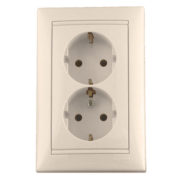 Розетка двойная Legrand Valena с заземлением со шторками слоновая кость (бежевый)