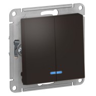 Двухклавишный выключатель с подсветкой 10А SE AtlasDesign, мокко [уп 10 шт]