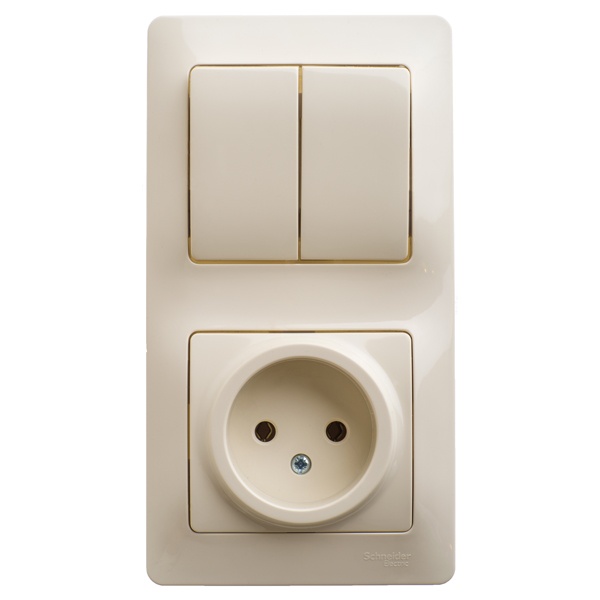 Блок: двухклавишный выключатель 10A + розетка без заземления 16A в сборе SE Glossa, бежевый